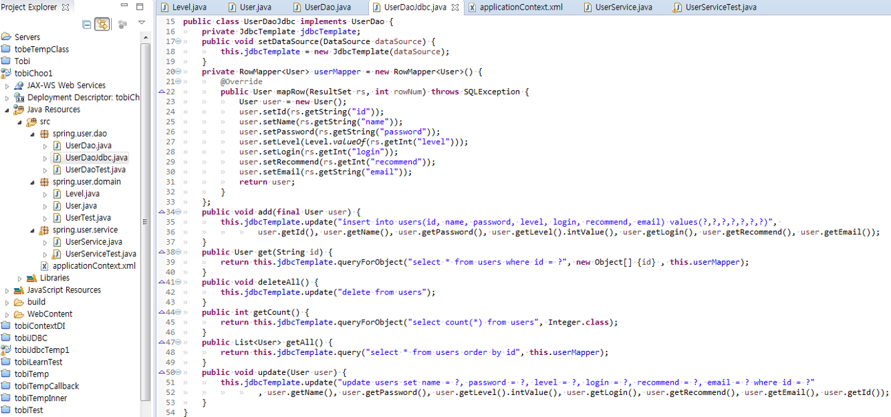 JDBC를 사용하는 DAO인터페이스 구현체