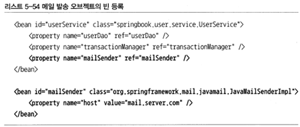 > 스프링이 직접 제공하는 MailSender를 구현한 추상화 클래스는 JavaMailServiceImpl 하나 뿐이지만, 이 추상화된 메일 전송 기능을 사용해 어플리케이션을 작성함으로써 얻을 수 있는 경우가 크다.