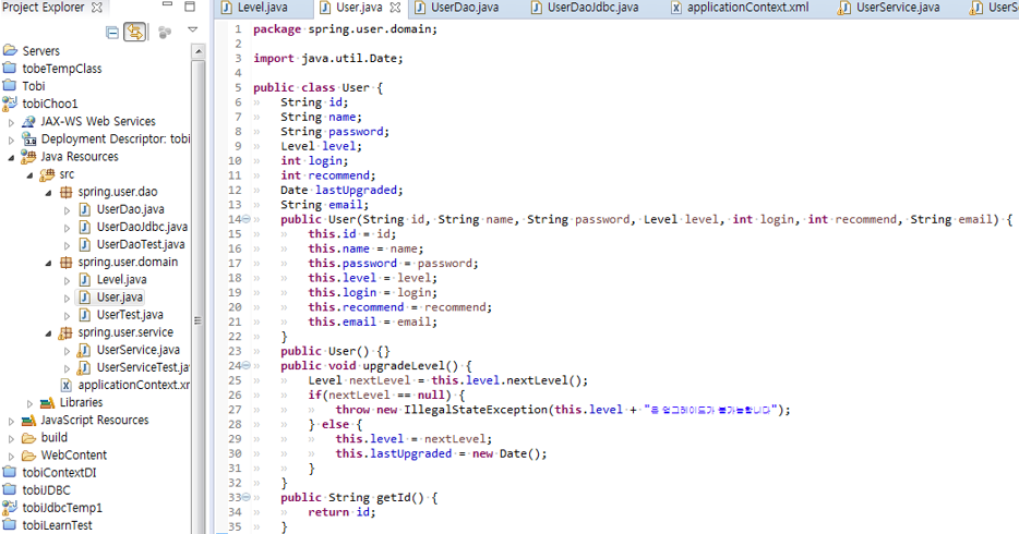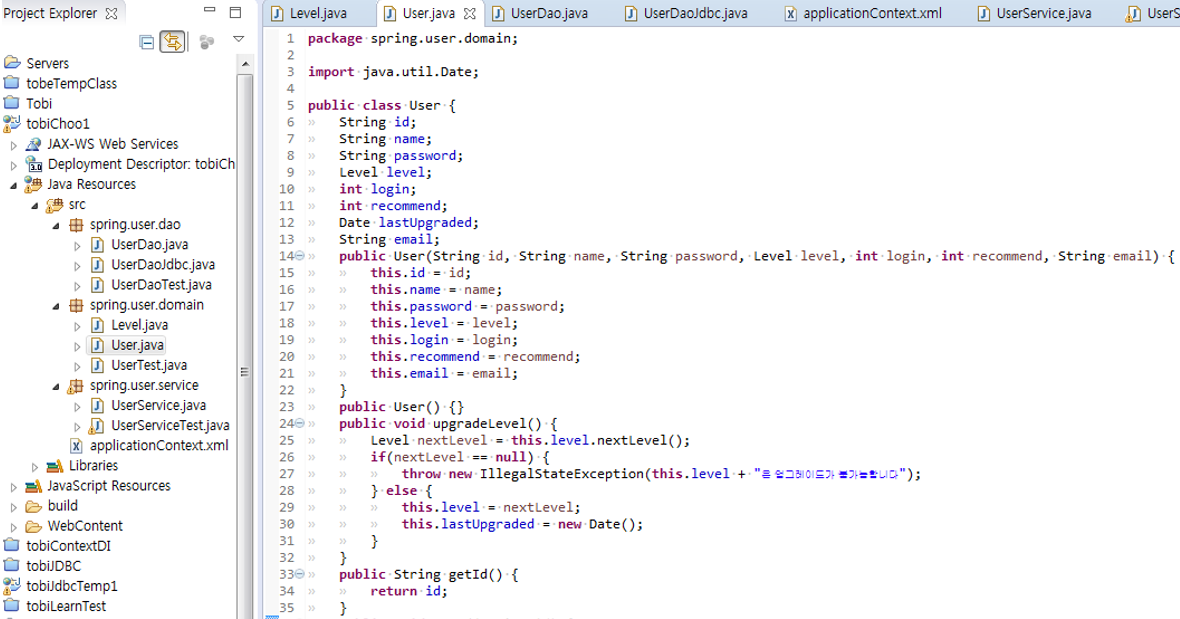 User 객체에 Level 객체를 사용하여 다음 레벨정보를 셋팅하는 역할 위임