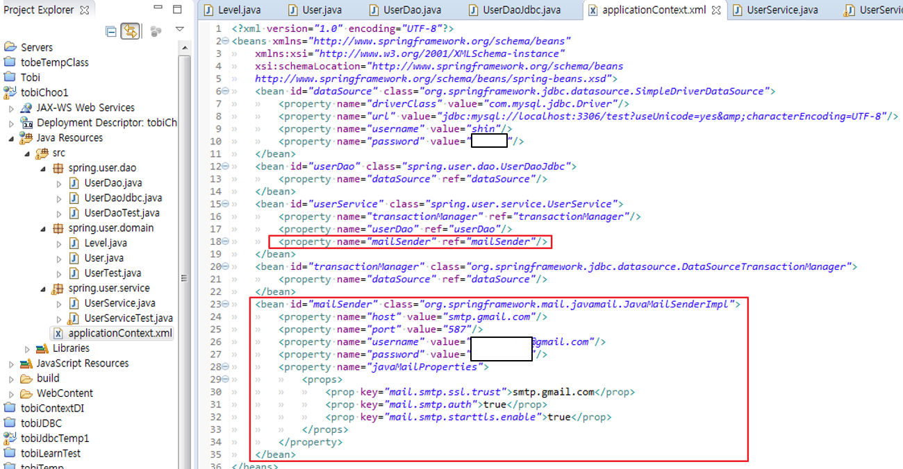 3. JavaMailSenderImpl : 메일 전송 오브젝트. 내부적으로 JavaMail API를 이용해 메일을 전송해줌.