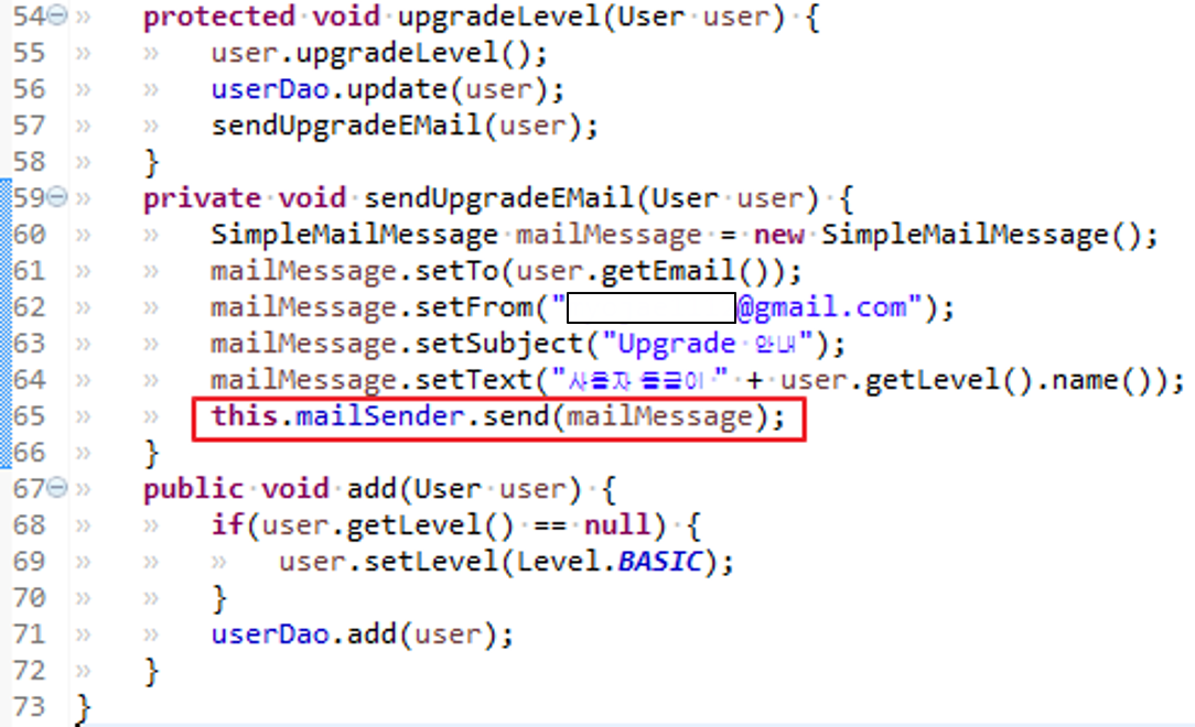 메일 전송 기능을 가진 오브젝트를 DI받도록 수정.
