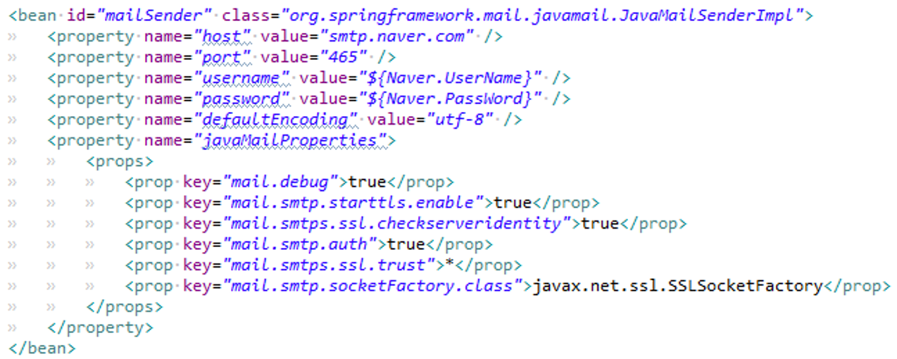 3. JavaMailSenderImpl : 메일 전송 오브젝트. 내부적으로 JavaMail API를 이용해 메일을 전송해줌.