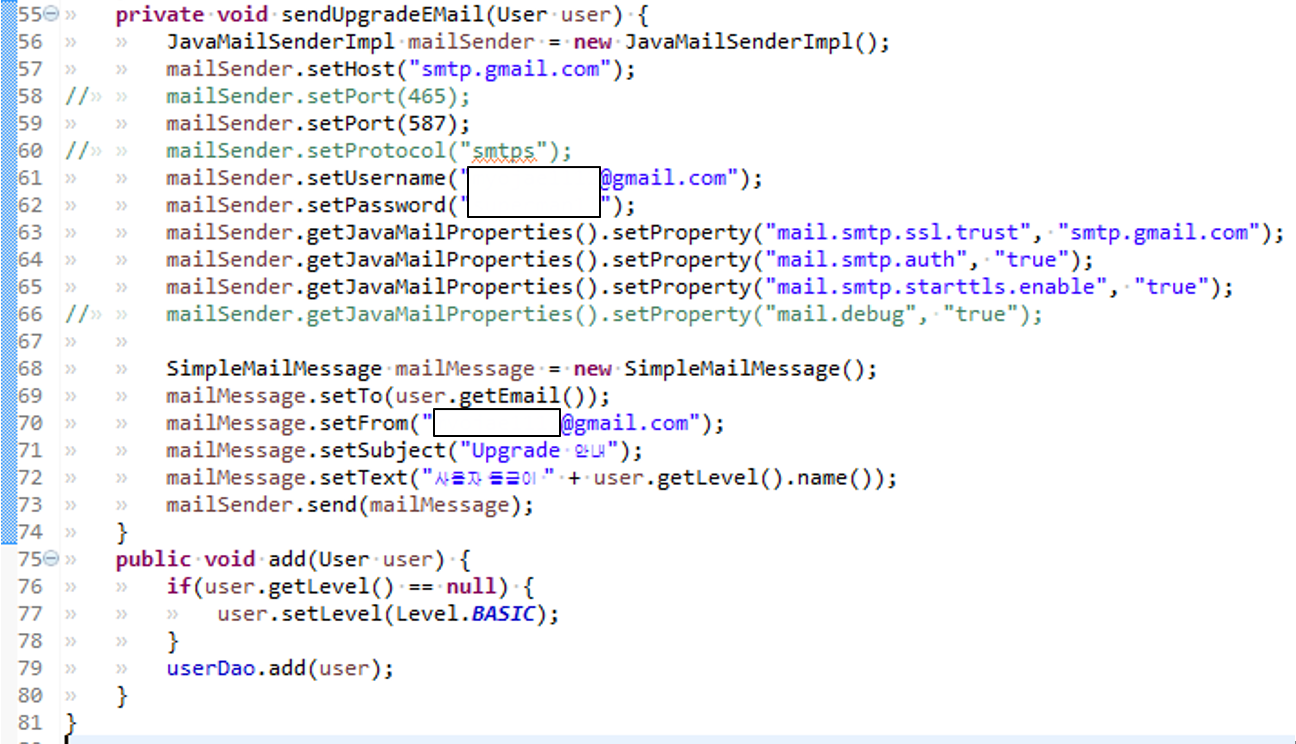 65. mail.smtp.start~ : TLS를 사용할 것인지에 대한 설정