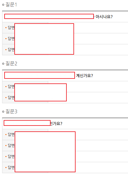 질문1,2,3이 키값, 질문안에 답변이 리스트로 3덩이의 리스트를 map에 담았다.