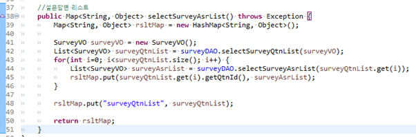 43~46. 설문조사의 키로 맵의 키값을 만들면서 맵안에 답변 리스트를 집어넣음