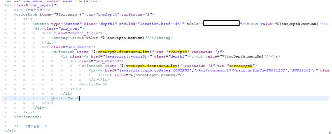 요런식으로 1메뉴에 중복되는 메뉴가 많지만 딱 중복제거 후 하나만 넣어주고, 2레벨역시 마찬가지
