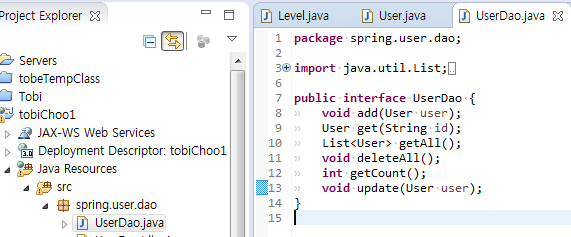 15. UserService를 구현한 비즈니스 로직 오브젝트를 DI 받는다.