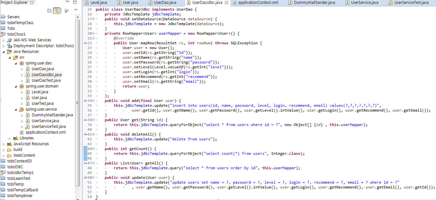 JDBC 기술 구현 전략 > 인터페이스, 템플릿 > JdbcTemplate
