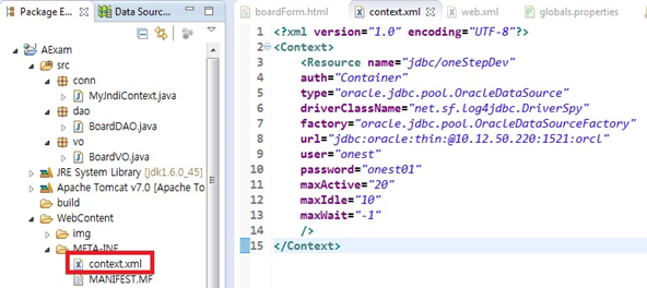 1. 해당 위치에 connectionPool(DBCP)을 얻어올 수 있는 코딩을 해준다.