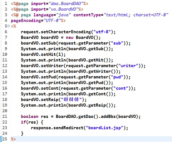 1. 이곳은 처음 jsp에서 bbsAdd.jsp로 보냈기에 여기로 submit된다.