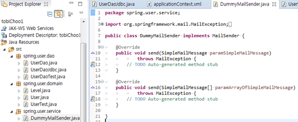 메일을 테스트시에도 계속 보내면 과부하가 걸리므로 Stub 작성