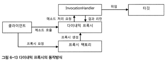 > 클라이언트 요청 > 다이내믹 프록시 오브젝트(Proxy.newProxyInstance)는 클라이언트의 모든 요청을 리플렉션 정보로 변환해서 invoke 메소드로 넘긴다.