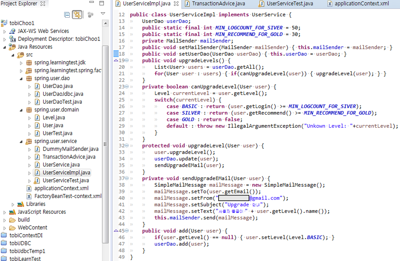 스프링 프록시 팩토리빈 트랜잭션. 다음레벨의 정보 레벨에게 위임(서비스 간소화 if 제거)