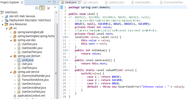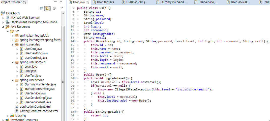 User의 레벨셋팅은 User에게 위임(서비스 간소화 if제거)