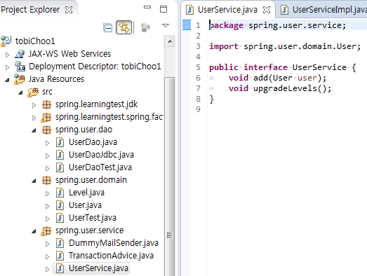 트랜잭션 테스트를 위한 TestService정의로 ProxyFactoryBean을 주입하여 프록시 오브젝트 생성