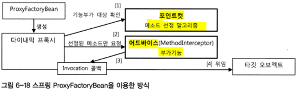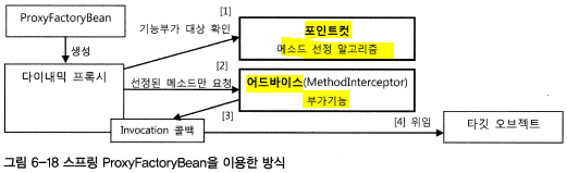 > 포인트컷이 필요하면 이름 패턴 지정해서 ProxyFactoryBean에 등록해 주면 된다.