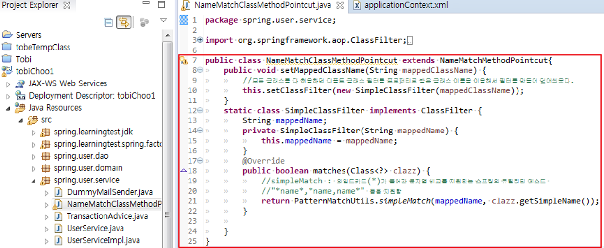 77. NameMatchMethodPointcut : 클래스 필터기능이 있긴하나, 있으나 마나 한 필터가 들어 있다.