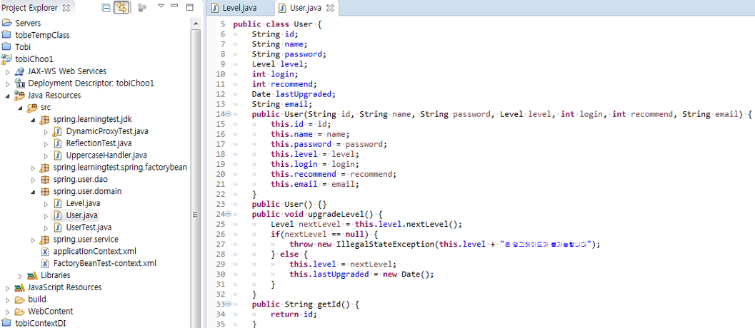 User정보 셋팅은 User에게 위임 > 서비스의 if가 줄어듬