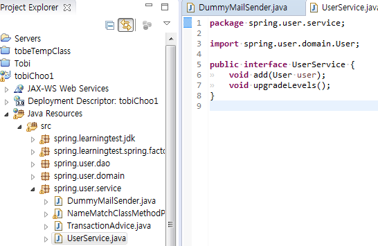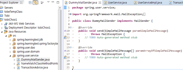 130. TestUserServiceImple : 포인트컷의 클래스 필터에 선정되도록 이름 변경. 이래서 처음부터 이름을 잘 지어야함.