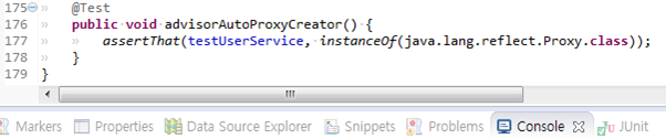DefaultAdvisorAutoProxyCreator에 의해 testUserSerivce빈이 프록시로 바꿔치기 된 사실을 충분히 알 수 있다.