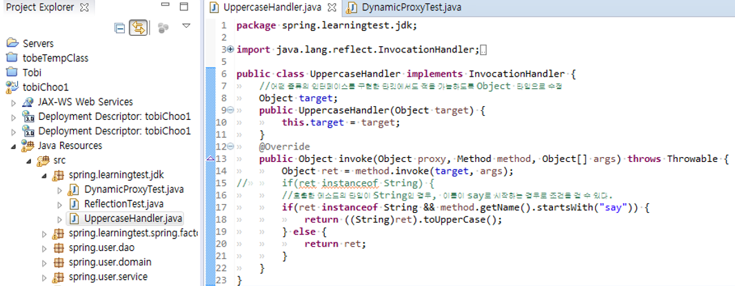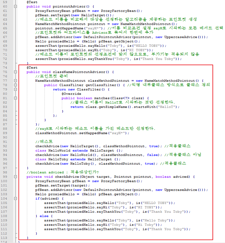 92~96. 모든 기존에 있던 HelloTarget이라는 클래스를 그대로 상속한 것이라 메소드 내용 동일