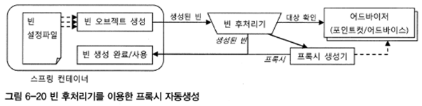 이렇게 빈 후처리기를 사용하면 일일이 ProxyFactoryBean을 등록하지 않아도 타깃 오브젝트에 자동으로 프록시가 적용되게 할 수 있다.