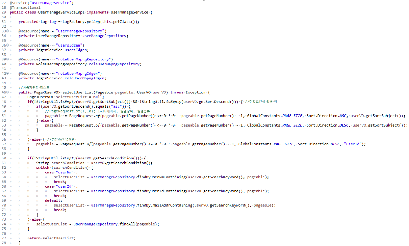컨트롤러는 메소드아규먼트리졸버를 구현한 JPA리졸버에 의해 JPA는 Pageable 객체에 쿼리로 가져온 리스트도 넣고, 페이징 관련 변수들도 가지고 있어 이 객체를 사용하면 편하다.