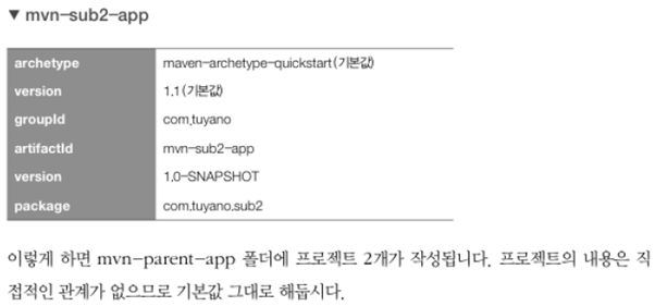 Maven-parent-app 디렉토리에 2개 이사의 프로젝트를 생성하고, pom.xml을 위와 같이 작성.