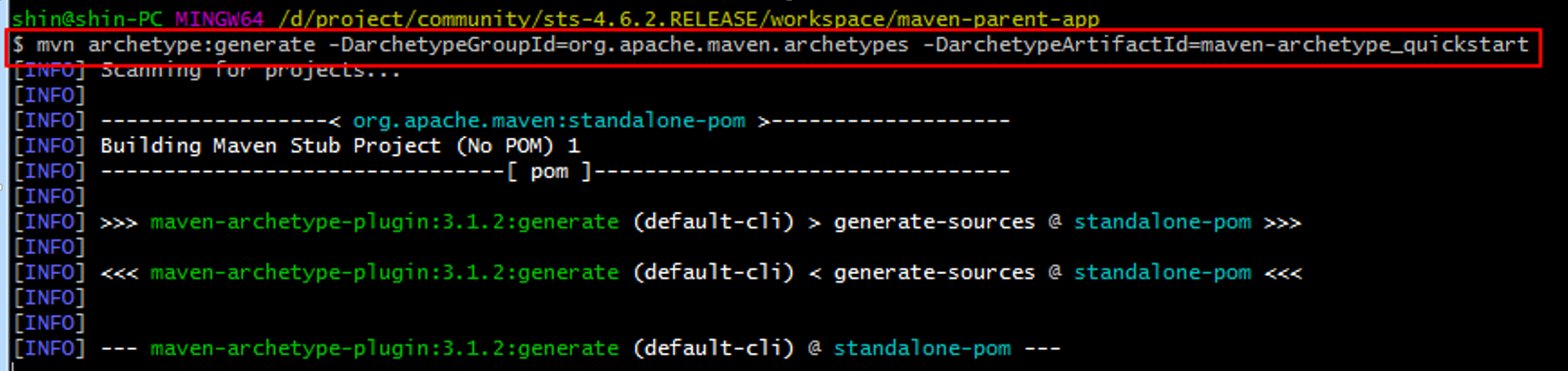 mvn archetype:generate -DarchetypeGroupId=org.apache.maven.archetypes -DarchetypeArtifactId=maven-archetype-quickstart