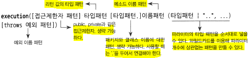 > Throws java.~.RuntimeException : 예외 이름에 대한 타입 패턴. 생략 가능