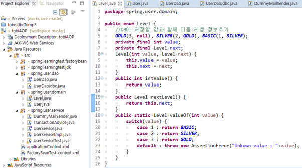 37. DefaultAdvisorAutoProxyCreator : 빈 후처리기. 이것이 빈으로 등록되어 있으면, 설정파일에 있는 모든 빈은 후처리기를 통해 포인트컷을 거쳐 적합한 것들은 프록시 혹은 새로운 오브젝트로 재탄생한다. 어드바이스에 의해.
