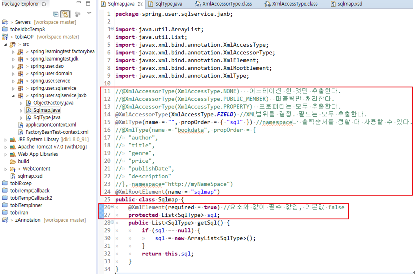 26~27. <sql> 태그의 정보를 담은 Sqltype 오브젝트를 리스트로 가지고 있다.
